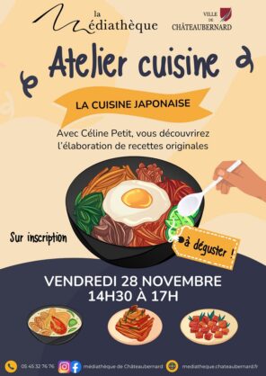 À vos tabliers ! Vous découvrirez l’élaboration de recettes originales en suivant les conseils de Céline Petit. Les plats réalisés seront dégustés collectivement.